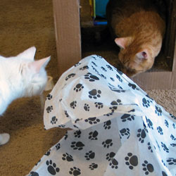 - Kato likes his new toy and Sandy likes her tissue paper.