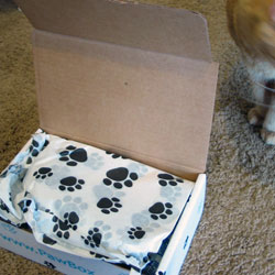 Kato got a special delivery yesterday. His PawBox! Actually this is his second PawBox. The first one was dismantled pretty quickly. I got pictures of this one except, silly mommy, I used the camera that Kato is scared of. He only investigated everything after I put the camera away.