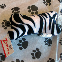 Zanies Wild Style Bone Mini: Kato is playing with this as I type. I like that the fabric is softer than most dog toys. Kato likes that it squeaks and is easy to toss.