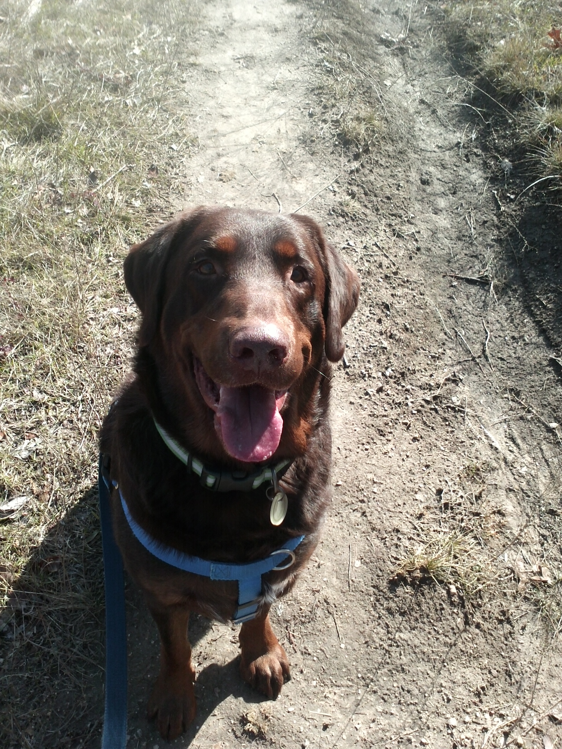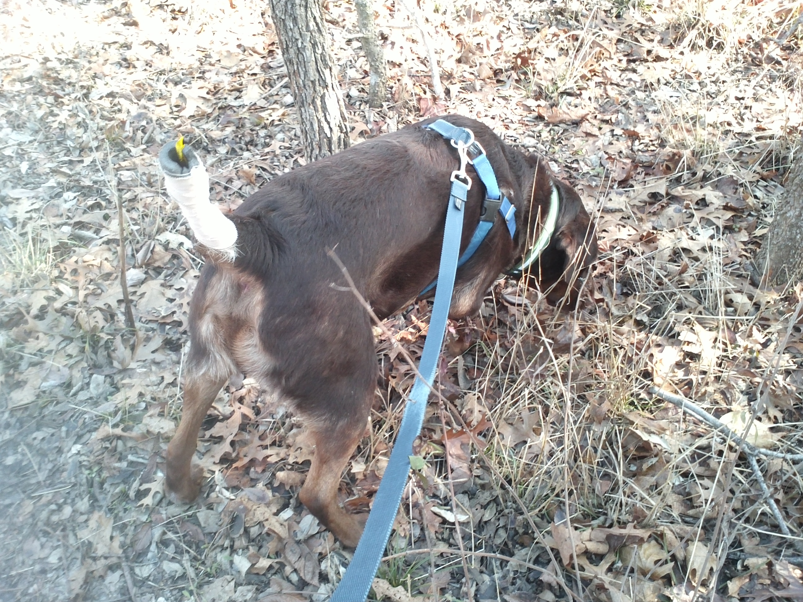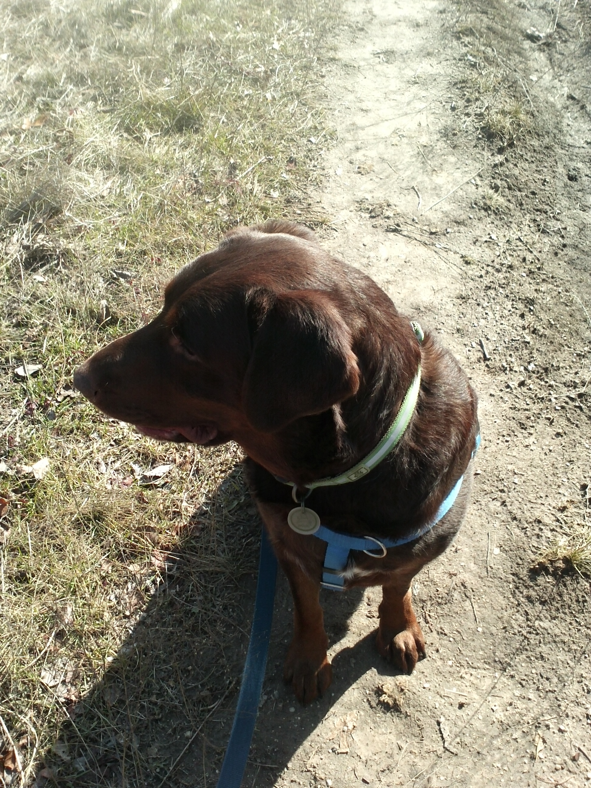 The weather here has been nice after several days of rain. I took advantage and took one of my regulars for a hike. He recently had a run in with another dog (that’s why the bandage on the tail) so I try to avoid busy areas. We went to a nearby nature preserve for a trek. It was muddy, but EH! he is a dog and I’m always covered in mud (or slobber).